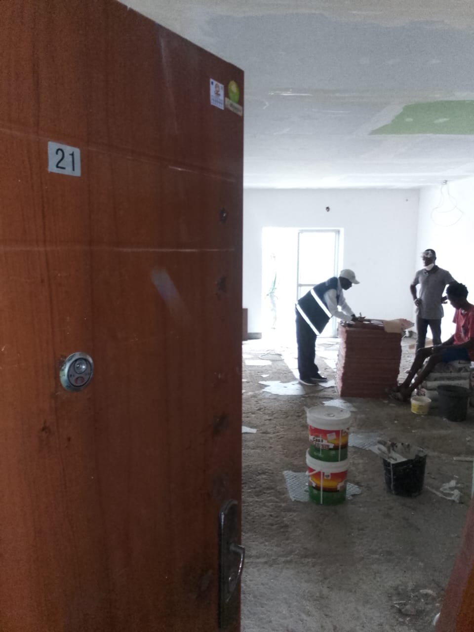 Hoje (20) de novembro, foi notificado o proprietário de uma apartamento na cidade do kilamba, que executava sem autorização as obras de melhorias do revestimento total da casa, tendo sido suspensas as obras