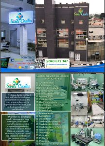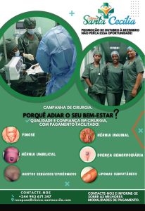 E está bem pertinho do Kilamba, mas precisamente, no condomínio BPC, Camama 1 , Talatona. A Clínica Santa Cecília possui os seguintes serviços: Emergência e urgências, laboratório, anestesiologia, cardiologia, cirurgia geral, cirurgia pediátrica,dermatologia, estomatologia, gastroenterologia, ginecologia e obstetrícia, imagiologia, infeciologia, Maxilofacial,internamento, medicina do trabalho, medicina geral e familiar, Neurocirurgia, ortopedia, pediatria, psicologia.