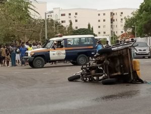 Nove pessoas ficaram feridas, em consequência de um acidente rodoviário, resultante de uma colisão fronte/lateral, entre um motociclo e um veículo automóvel, ocorrido sexta feira (28) no cruzamento entre as ruas J e K, no município do Kilamba, em Luanda.